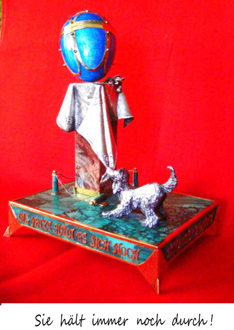 Osterei Benutzte Materialien: Silber (gegossen), Emaille (Guilloche), Rhadonit, Jaspis, Overlay-Buchstaben, (vergoldetes Messing) V. Bitel